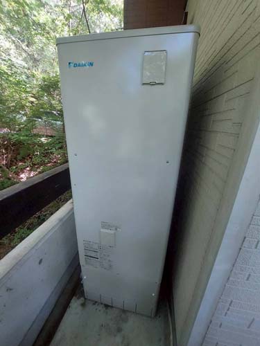 佐倉市青菅 三菱電機家庭用自然冷媒CO2ヒートポンプ給湯機 ヒートポンプユニットSRT-LUK45-L→ダイキン自然冷媒CO2・家庭用ヒートポンプ給湯機 ヒートポンプユニットRQW45YHV、貯湯ユニットTUA37YHV エコキュート交換工事 施工前 施工後
