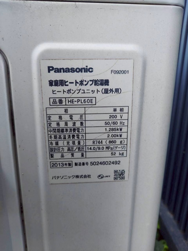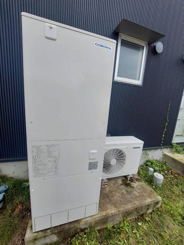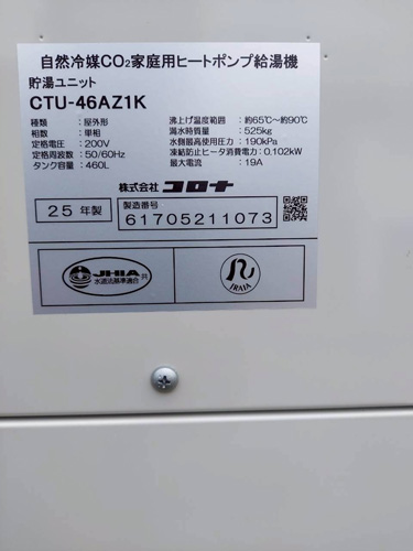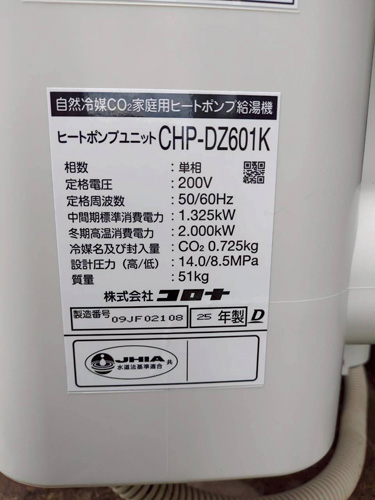 船橋市印内町 パナソニック家庭用ヒートポンプ給湯機ヒートポンプユニット(屋外用)HE-PL60E→コロナ自然冷媒CO2家庭用ヒートポンプ給湯機ヒートポンプユニットCHP-DZ601K、貯湯ユニットCTU-46AZ1K エコキュート交換工事